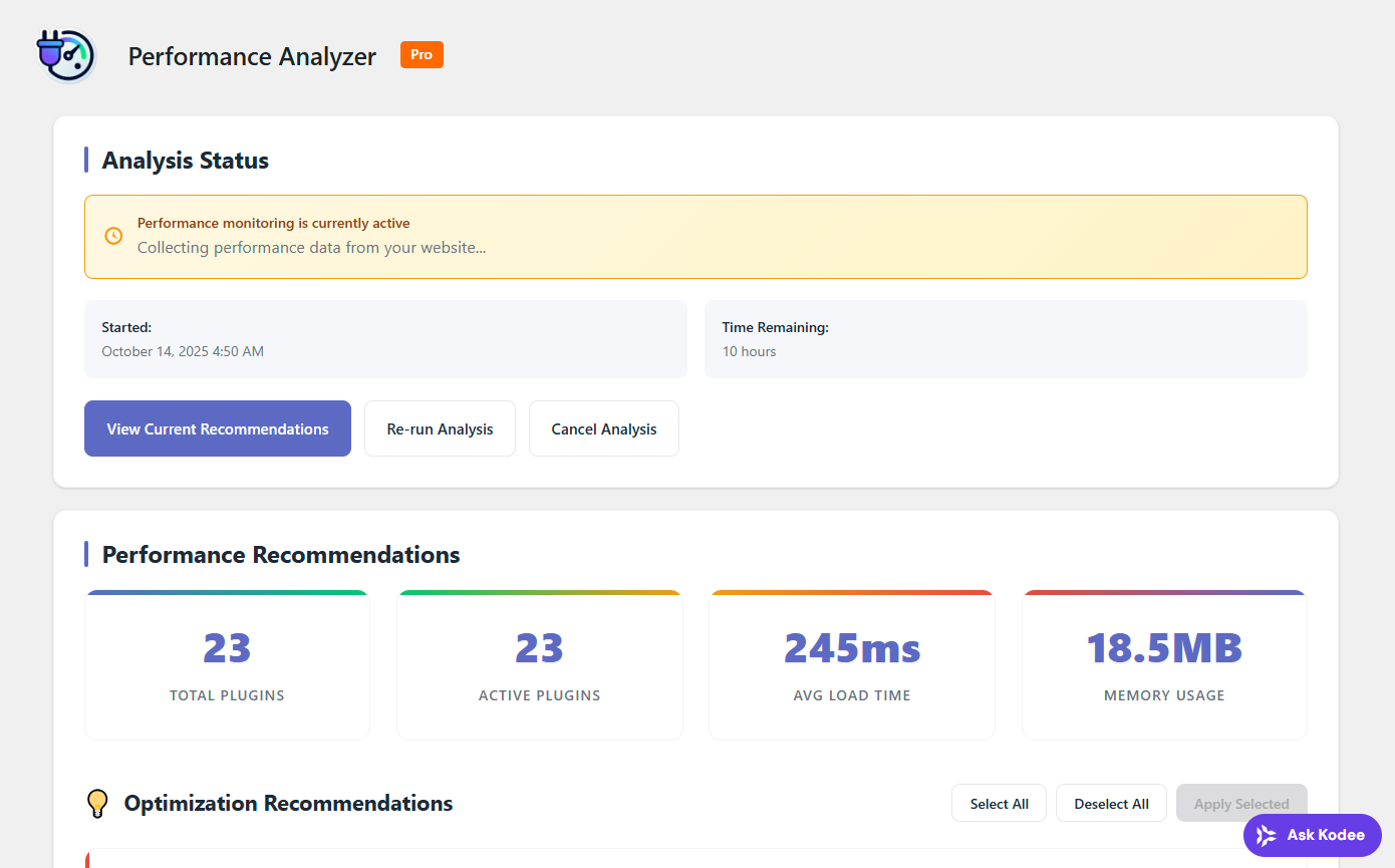 Intelligent recommendations detect optimization opportunities automatically. See potential load time savings before applying.